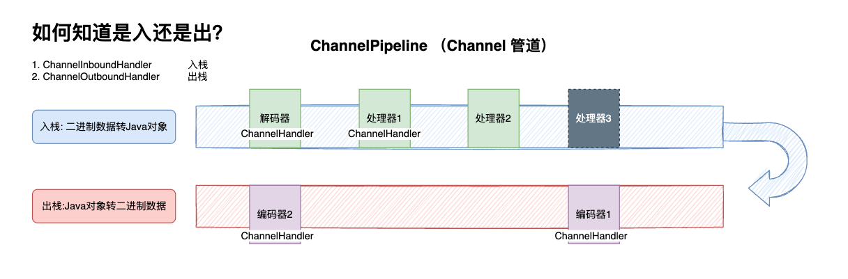 只有管道还不行,要对管道中流动的数据进行处理。怎么来处理呢? 就是 ChannelHandler